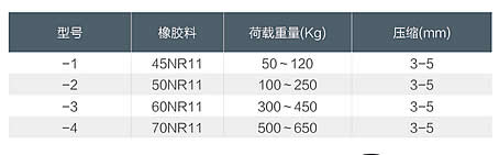 ● 材料:標(biāo)準(zhǔn)結(jié)構(gòu):橡膠彈性體系硬度為45~70邵爾A的天然橡膠(NR)